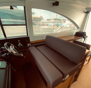 La rénovation complète du yacht Beneteau Gran Turismo 45 pieds a été réalisée avec succès. Le taud de soleil et les coussins de bain de soleil avant ont été remplacés, offrant ainsi un aspect neuf et rafraîchissant. De plus, la moquette en jonc de mer a été installée, ajoutant une touche d'élégance et de confort à l'intérieur du yacht. Tous ces éléments ont été soigneusement choisis pour améliorer l'esthétique et le confort de ce magnifique bateau.