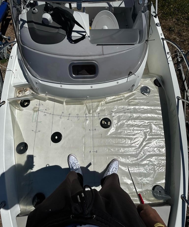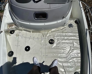L'utilisation d'un polyane transparent va être nécessaire afin de repérer les emplacements des attaches fixées initialement sur le bateau pour les retranscrire sous le nouveau coussin (ou taud) à venir (velcros, pressions et tout autres types d'attaches).